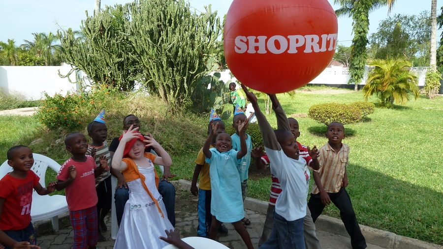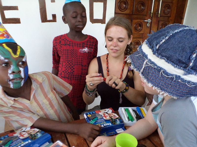 Nicole had also purchased several new footballs and a huge beach ball that the children had a fantastic time throwing and chasing around. The volunteers set up a face-painting station, where the children got to choose what they wanted on their faces, and a game where the children were blindfolded and got to pick a prize. Everyone had a great day, and went home happy and tired.