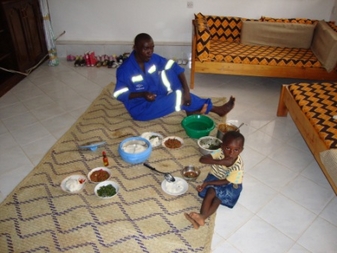 Lunch is ready – Patrick and Osman waiting for me to have Ugali – unfortunately inside due to rain