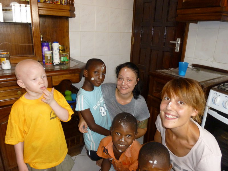 Last Saturday the mood here was glorious, again. As the kids get very little candy here, I decided to bake cookies with them! No sooner said than done. The necessary ingredients were fast concerned and in no time, many hard-working assistants found! The children loved to help in the kitchen, to cut the chocolate and to mix the batter.  Fortunately, Mama Anna, who always has the right touch for the quantity of ingredients was also there! We had all together a giant fun in the kitchen and the cookies were so delicious.