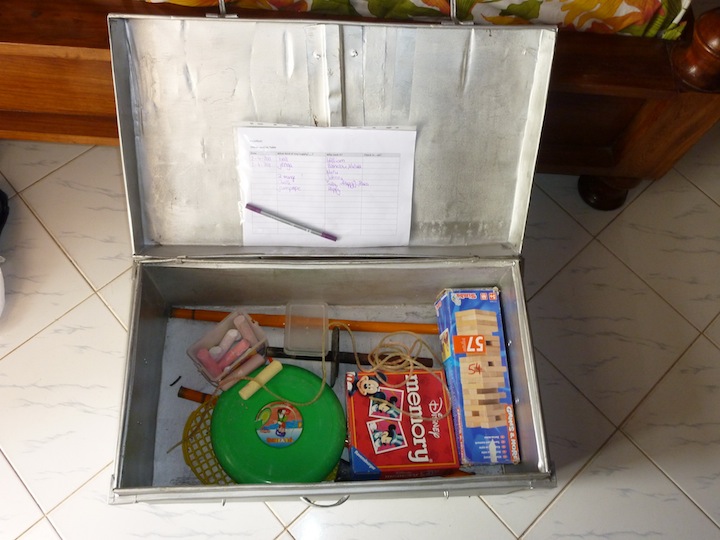 Unfortunately, for the first time we had to deal with a few behavior problems this week. I mean it is quite clear that our children are just “normal kids”. As elsewhere in the world there are little problems, which you can and need to solve with suitable means. Since the children previously never had any toys, they therefore did not exactly know how to use them. And because no child ever has possessed their own toys of course everyone wants to have it for his or her own. So there are a couple of play cars, etc., which broke during the last time they played with them. To counteract this in future and to teach them responsibility, we have bought a box in which the toys are kept now. If a child wants something to play with, it will be written down on a check-out list (who has taken which toy). Does the child break the toy or doesn’t bring it back, he or she must expect consequences. And the box has already shown the desired effect. So far no other toy broke!