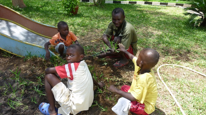 Also the children who have behaved exemplary this week had been rewarded. They were allowed to join me in the classroom to paint with water colors, while the remaining children had to help Mama Grace with the household work and Uncle Patrick with the work in the garden (we plant our own vegetables here, too) or with sweeping the house.