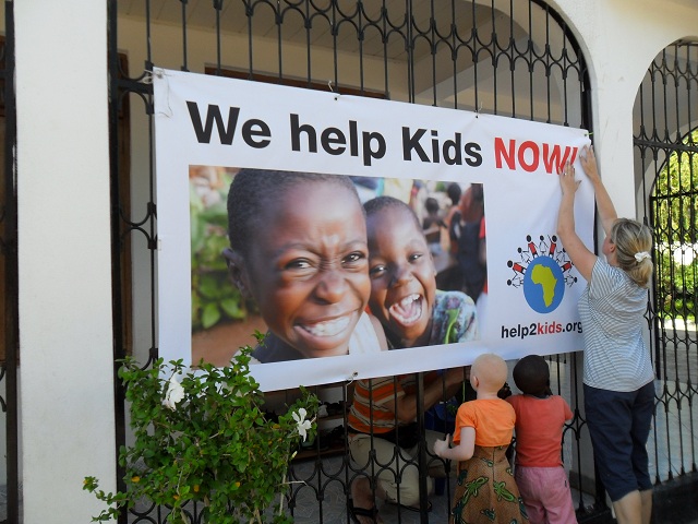 Kurt and Marianne also brought a present with themselves: a new help2kids banner! As you can see from the pictures, it is bigger than the old one and it has great colors, as the old one was discolored by the sun. Thanks for that! Asante sana!