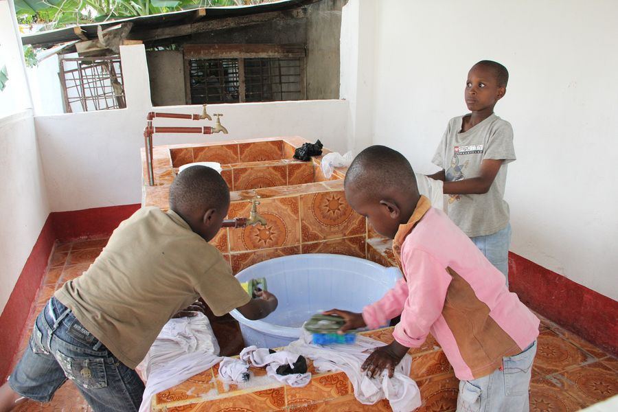 Despite the fact that it is officially school break and everyone else is on vacation, our Standard 3 students continue to go to school. When it is not vacation they usually leave for school at 7 am and return at around 5 pm on weekdays, and have half days on Saturdays. These are much longer school hours than any other children at help2kids. This week they have been attending school every morning. While we love that their teacher is so motivated, we miss them a little bit too! Here are pictures of our hardworking Standard 3 boys (Evaristo, Pascal, and Augusti) washing their school uniforms, Zainabu (our only Standard 3 girl), and Evaristo.