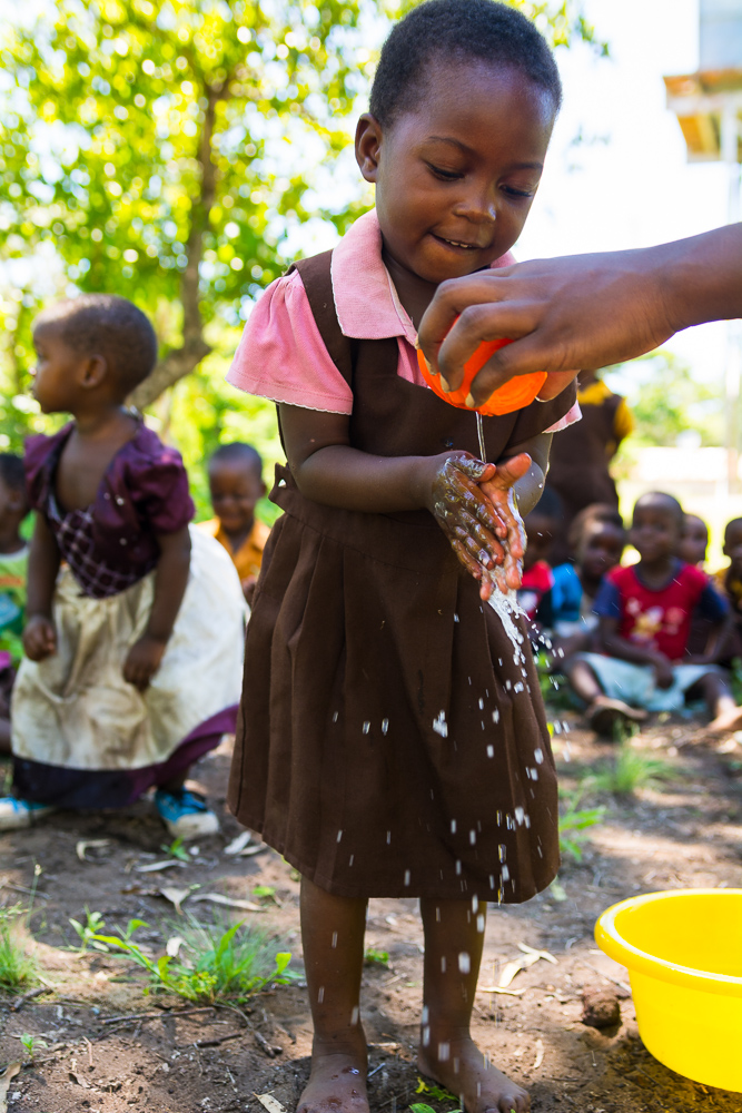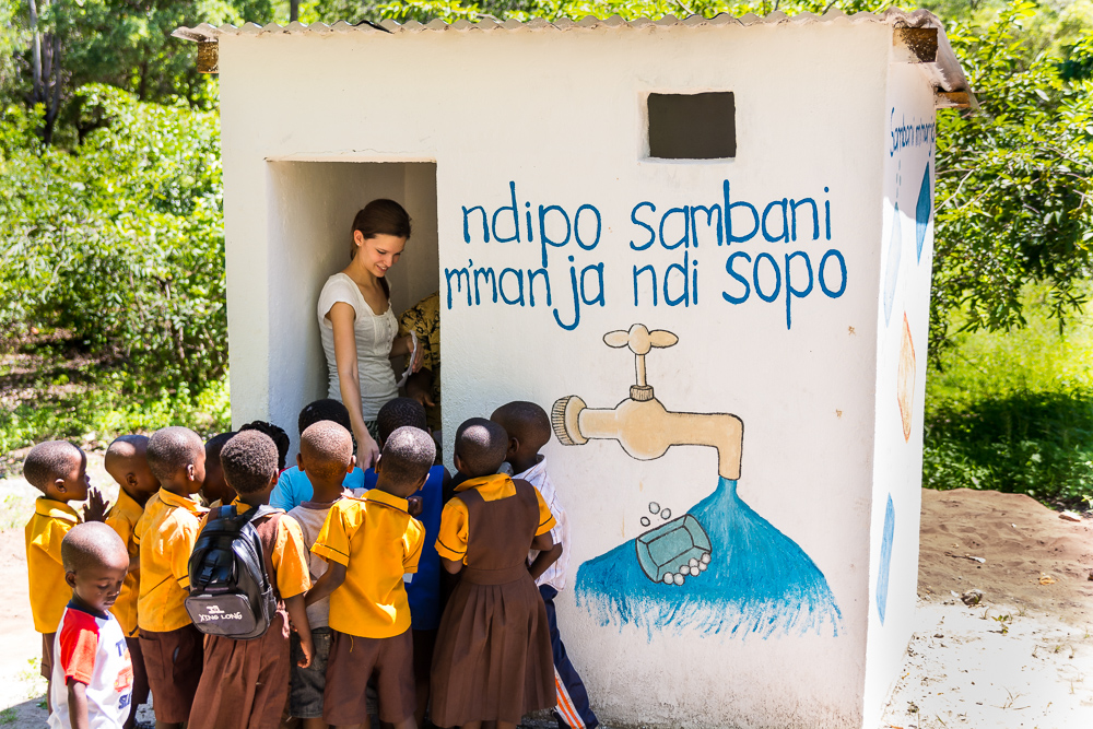 Anja wanted to make sure the message of improved hygiene reached beyond Chisomo so Anja taught a lesson on the importance of handwashing and using the toilet. During the lesson, Chisomo students rotated through three different stations.