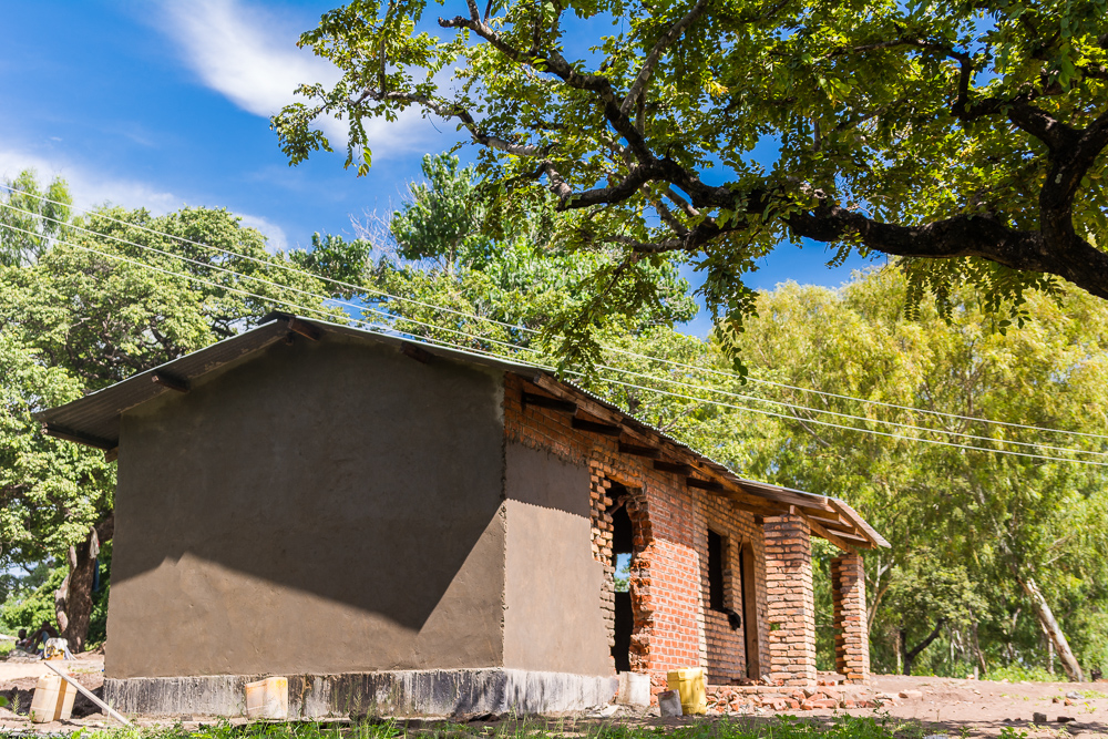 As the toilet was completed and decorated, the class building improvements were initiated, and then began to evolve. Due to Anja and Lena’s incredible fundraising efforts, a simple enlargement progressed into a building with two classrooms which will each have a dedicated entrance, a secured storage room, and a veranda. The improved building will be equipped with locking doors to prevent damage and vandalism, and new chalkboards will be installed. In a few short weeks, the Chisomo building has been completely transformed from the shabby former pump-house it once was, into a handsome, nearly completed school block.